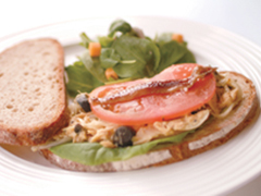 ツナ、ブラックオリーブ、アンチョビ、トマト、サラダ菜、低温熟成・自家製酵母パン、サラダ