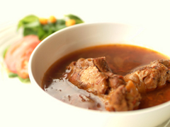 国産鶏骨付きもも肉のスープカレー、自家製パン、サラダ
