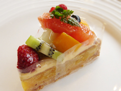 葉っぱの形のチョコレートパイ、苺・カスタードクリーム・生クリーム
